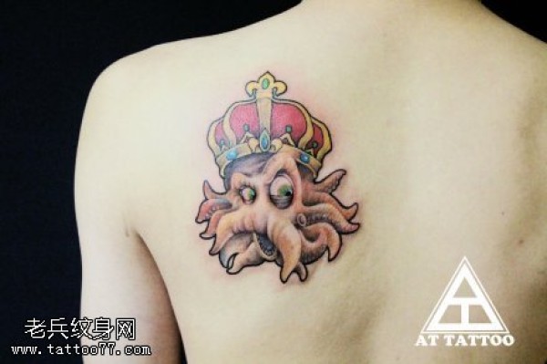 肩部彩色章鱼皇冠纹身图案