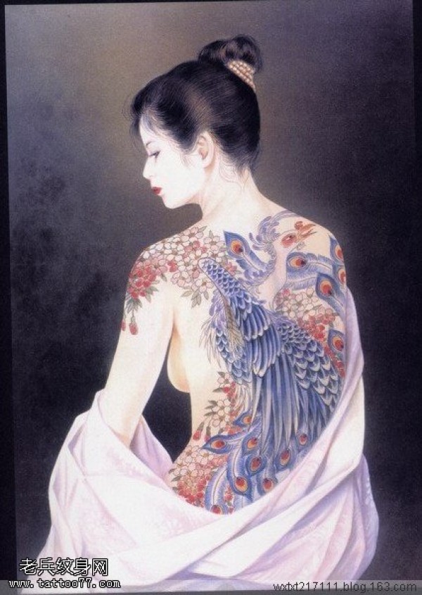 纹身图吧提供的一套精美日本浮世绘纹身图案之小妻要纹身画稿系列1