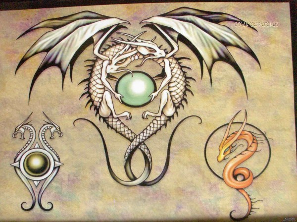 龙纹身手稿_一组老传统黑灰龙手稿纹身图案