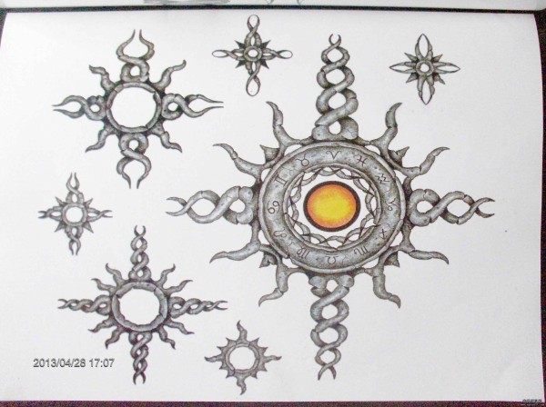 分享一款石雕太阳纹身图案