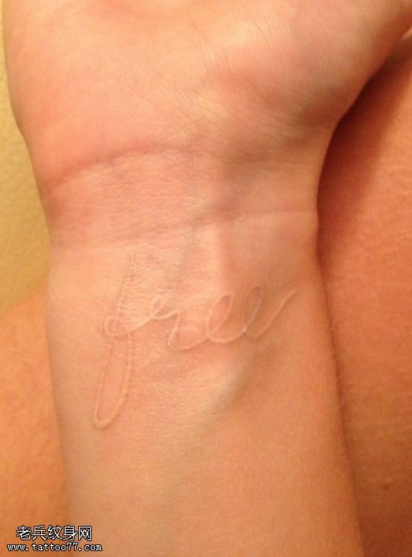 纹身图吧分享一款手腕白色隐形字母纹身图片