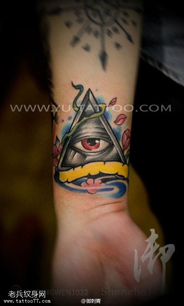 纹身图吧分享一款手腕彩色上帝之眼纹身图案