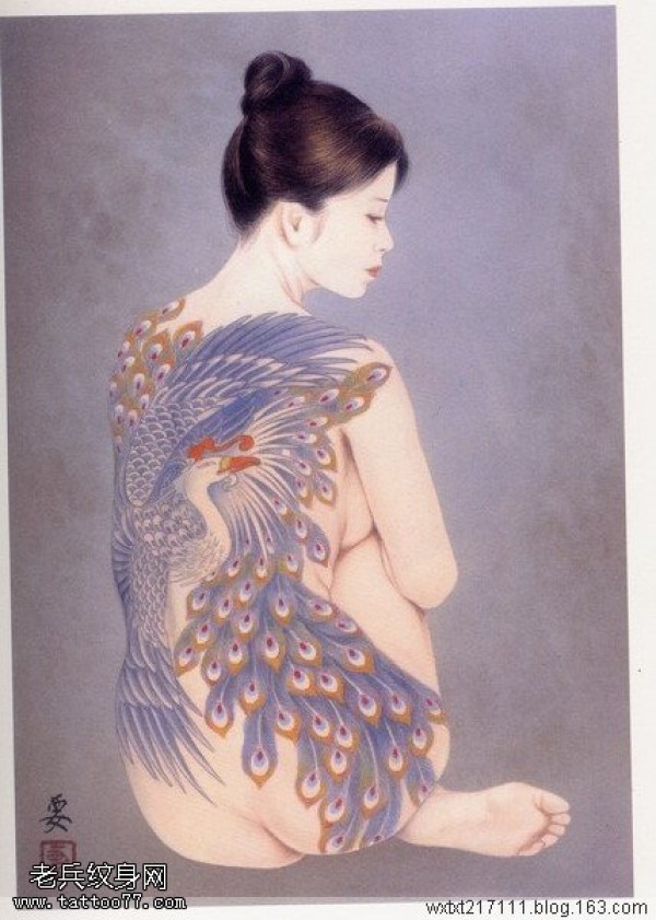 纹身图吧提供的日本浮世绘纹身图案之小妻要纹身画稿系列3
