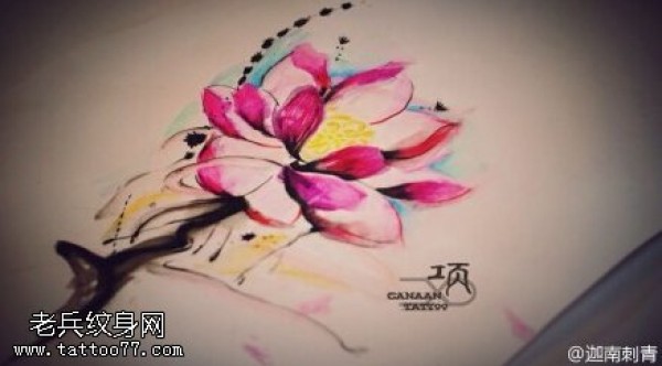 彩色个性莲花纹身手稿图案