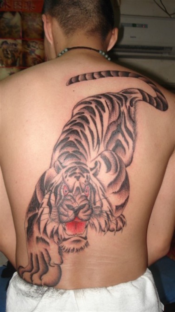 背部下山虎纹身图案-蚌埠纹身图吧霞艺纹身分享