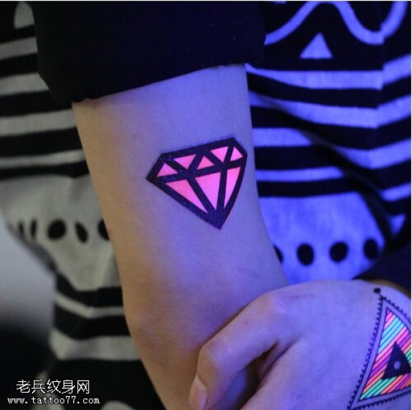 女生手臂荧光钻石纹身图案