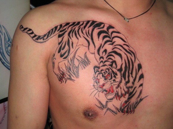 胸部下山虎纹身图案-蚌埠纹身图吧霞艺纹身分享