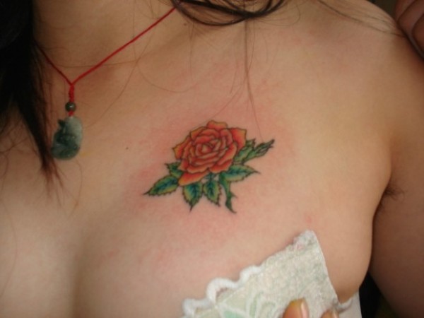 女性胸部玫瑰花纹身图案-蚌埠纹身图吧霞艺纹身分享