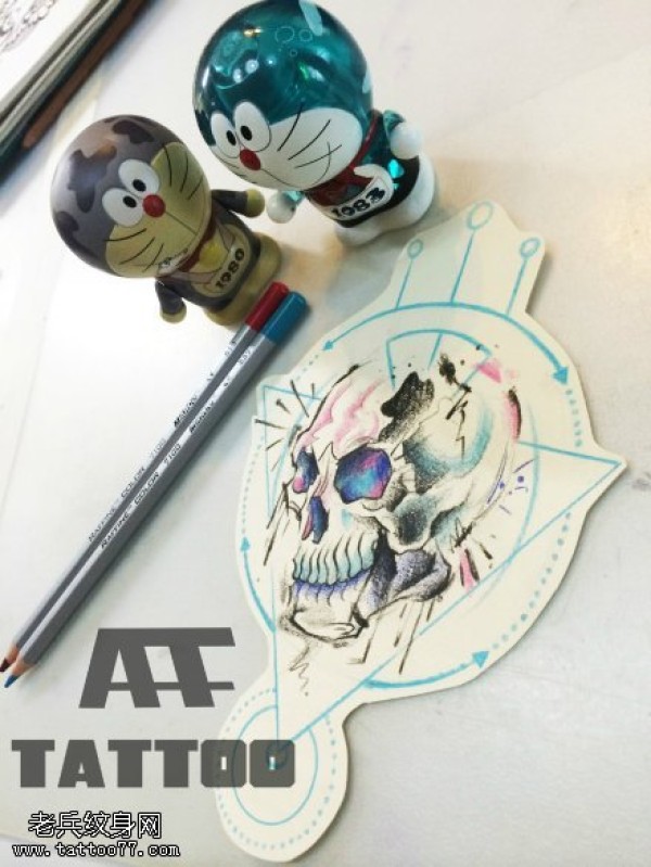 彩色欧美骷髅纹身手稿图案由纹身图吧提供