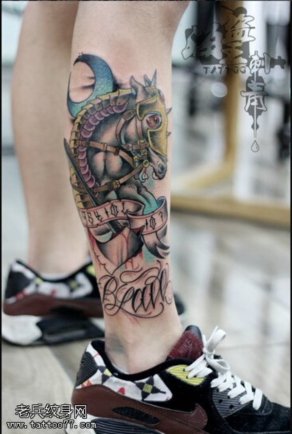 花腿纹身--一组大黑腿纹身图案作品欣赏