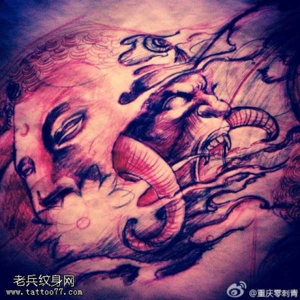 双子座纹身手稿_29张十二星座之双子座纹身图案手稿