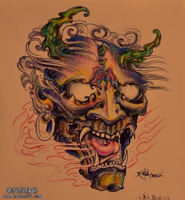 能面万媚纹身手稿_52张日式能剧面具纹身手稿图案素材欣赏