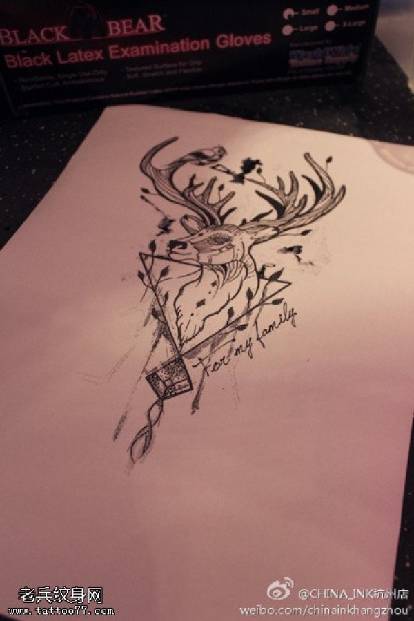 羚羊纹身手稿图案由纹身图吧提供