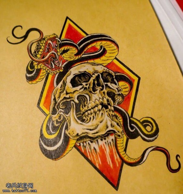 彩色骷髅蛇纹身手稿图片由纹身图吧提供