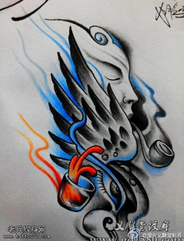 彩色机械翅膀纹身图片