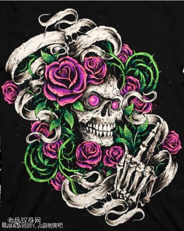 彩色欧美骷髅玫瑰花纹身手稿图片