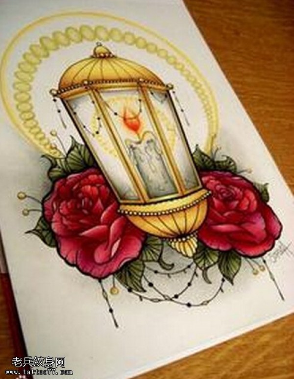 彩色灯塔玫瑰花纹身图片由纹身图吧提供