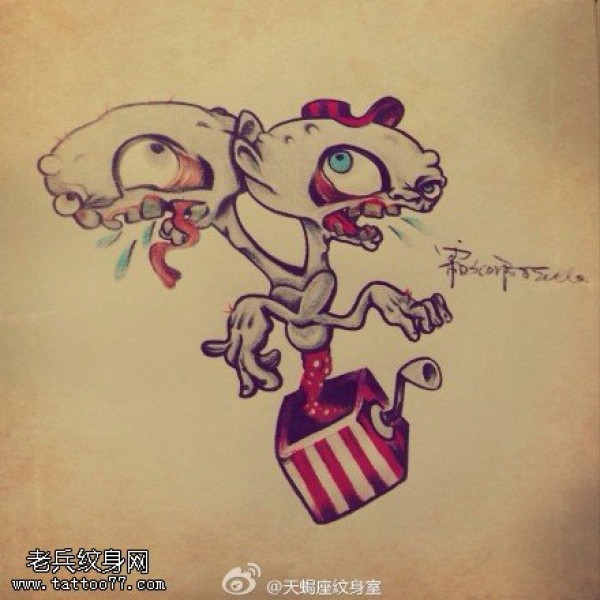 彩色卡通纹身手稿图片