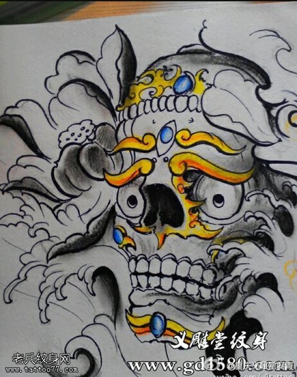 传统嘎巴拉莲花纹身手稿图片由纹身图吧提供