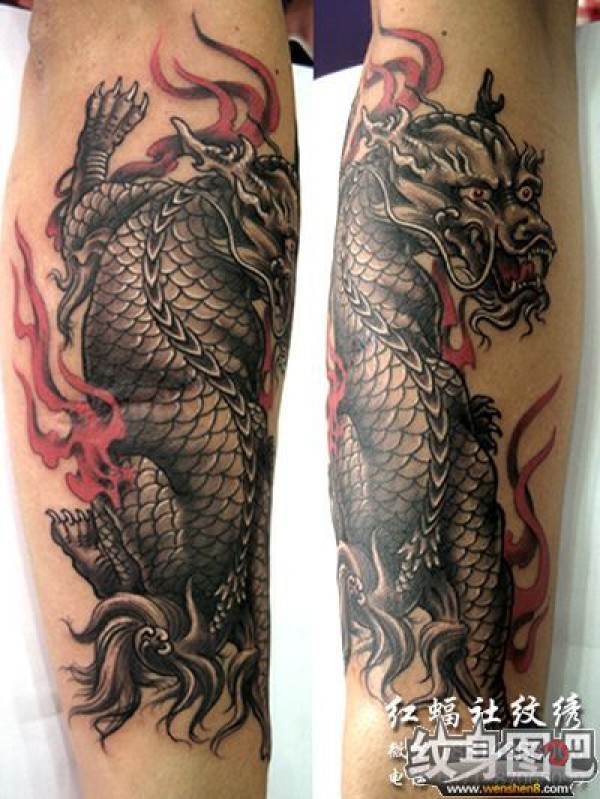 龙纹身手稿_一组老传统黑灰龙手稿纹身图案