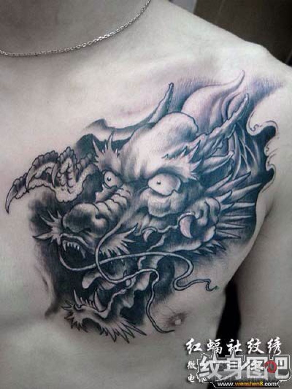 龙纹身手稿_一组老传统黑灰龙手稿纹身图案