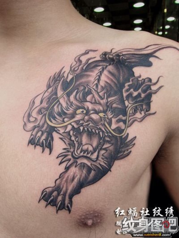 龙纹身手稿_一组老传统黑灰龙手稿纹身图案