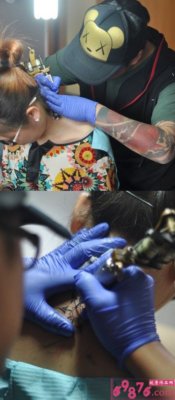 后颈图腾纹身现场