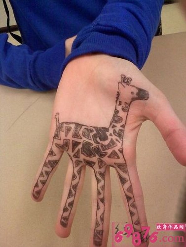 卡通长颈鹿手掌纹身