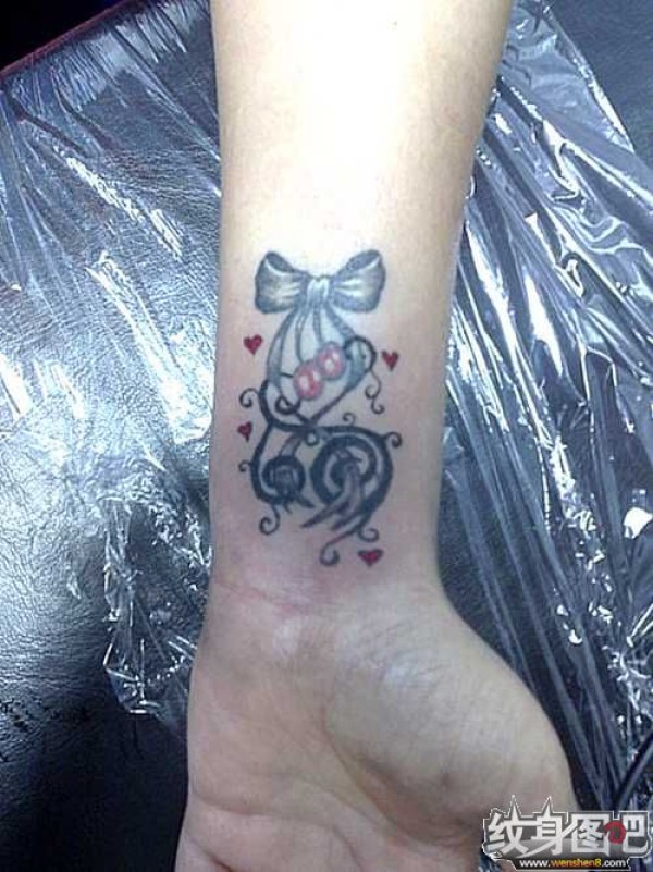手腕上的蝴蝶结纹身