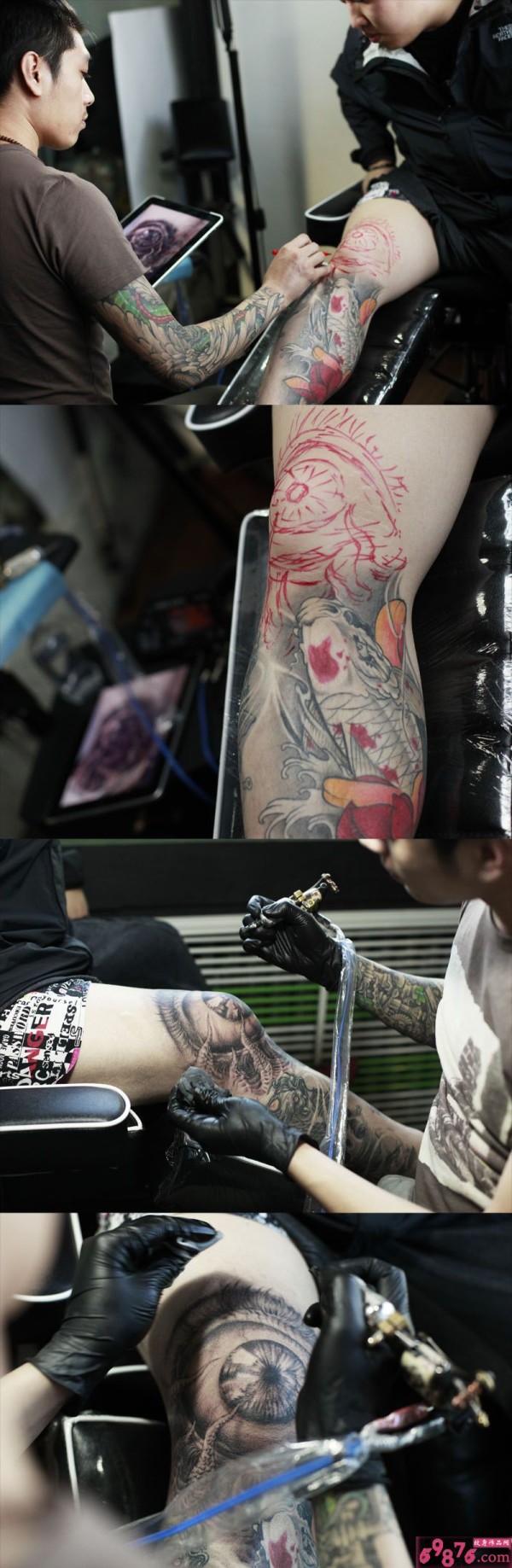 腿部个性鲤鱼眼睛纹身现场