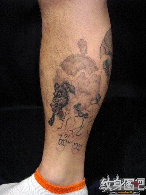 小腿上一头驴纹身图案