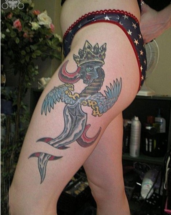 传统花腿纹身--18张传统风格的大花腿纹身图案作品