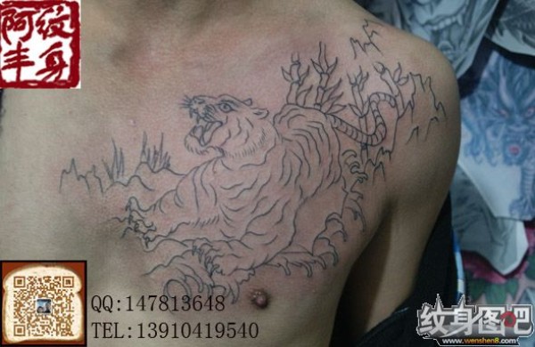 胸前老虎纹身 纹身图案#北京海淀区纹身#洗纹身