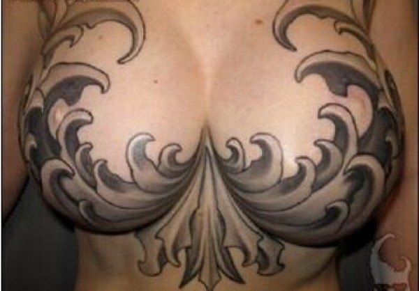 胸部全裸大胸美女个性胸部波浪纹身图