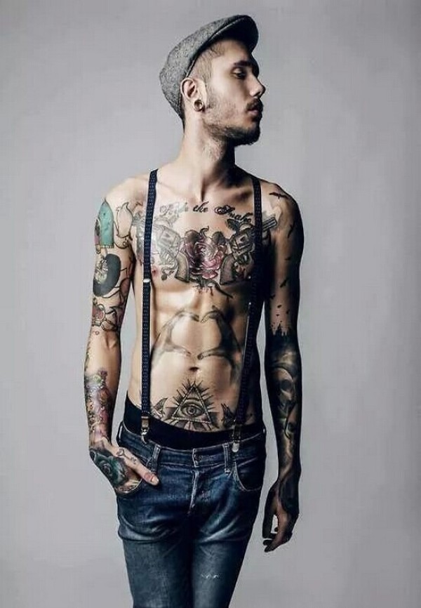男人上半身个性纹身图案