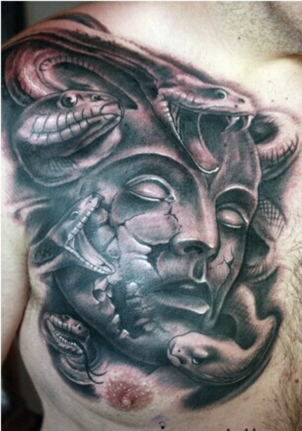 超大面积的美杜莎纹身图案