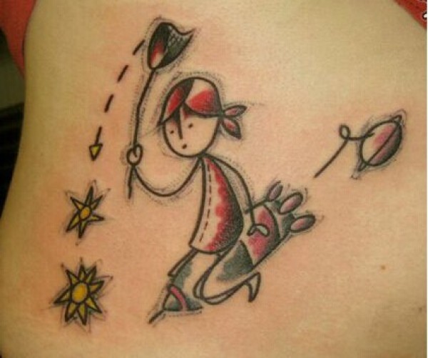 分享一款腰部时尚性感的蝶恋花纹身图案_腰部纹身图案大全_纹身图吧