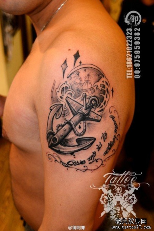 手臂个性船锚纹身图片