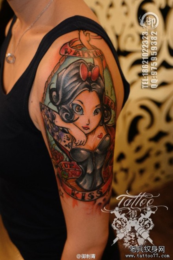 手臂彩色shool女郎纹身图片