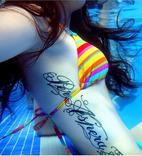 时尚女孩花体字纹身图案
