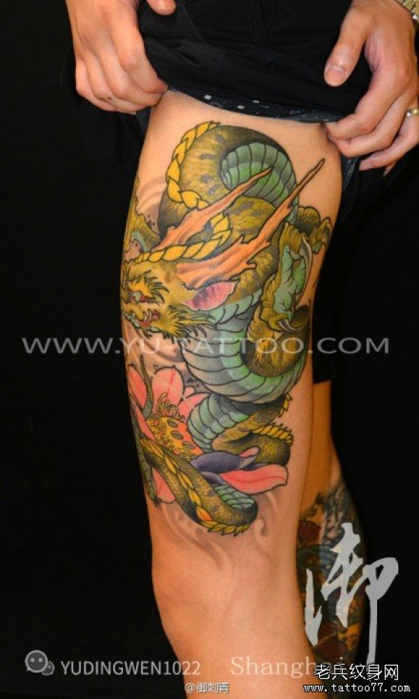 腿部彩色龙纹身图片