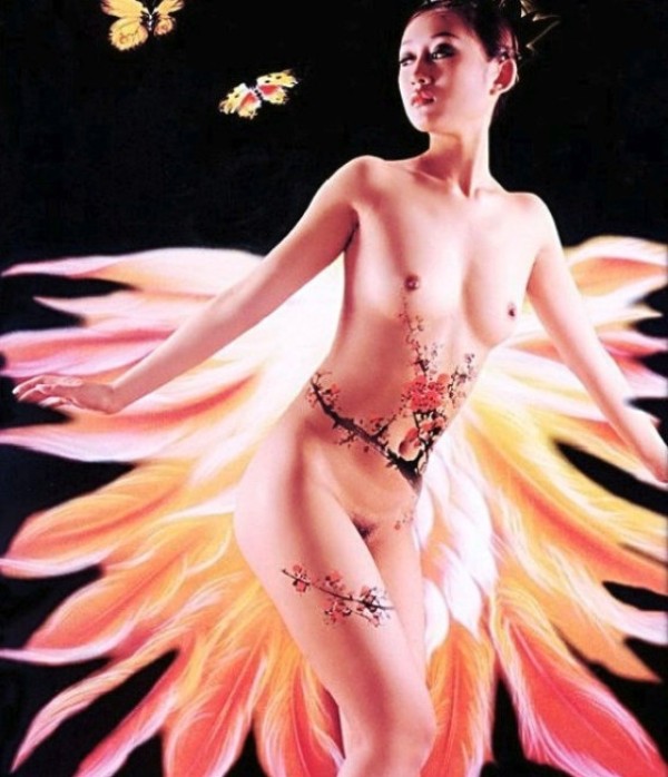 舞台漂亮美女漂亮性感个性梅花纹身图