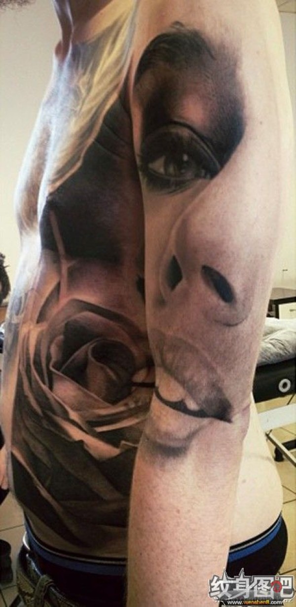 手臂上纹了一张巨大的美女面孔