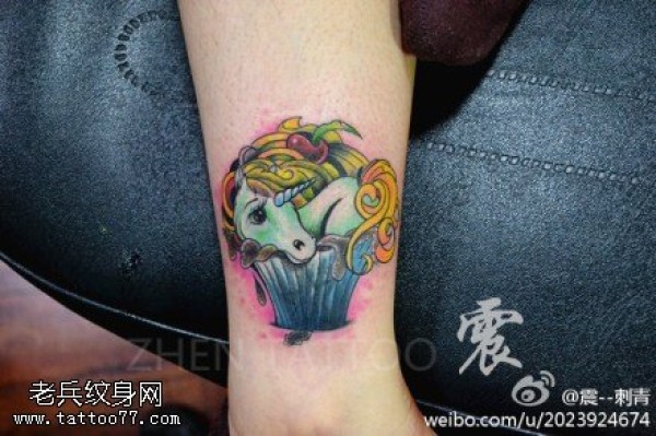 脚踝彩色独角兽纹身图案