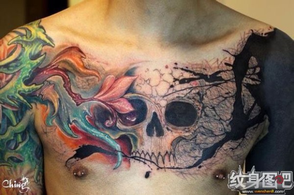 巨大的黑灰色满胸纹身图案大全来自纹身师格雷格
