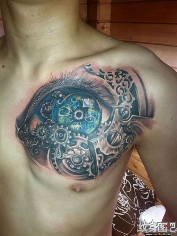 巨大的黑灰色满胸纹身图案大全来自纹身师格雷格