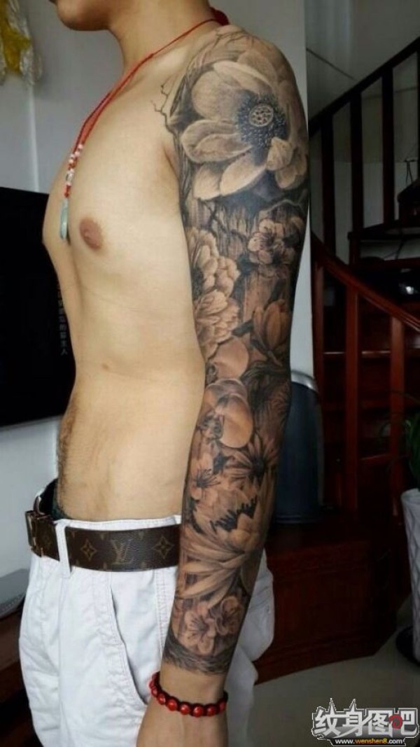 巨大的黑灰色满胸纹身图案大全来自纹身师格雷格