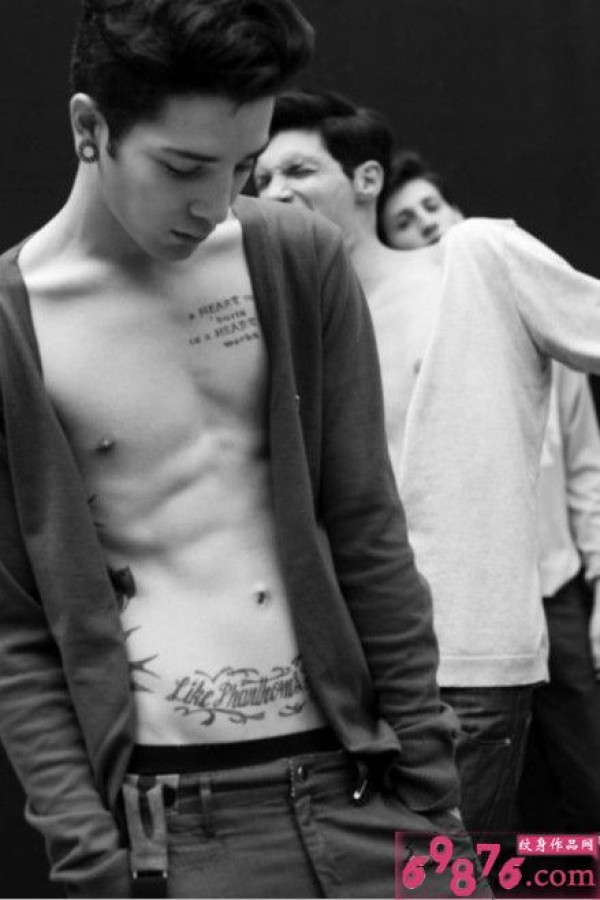 欧美男人个性腹部胸部英文纹身