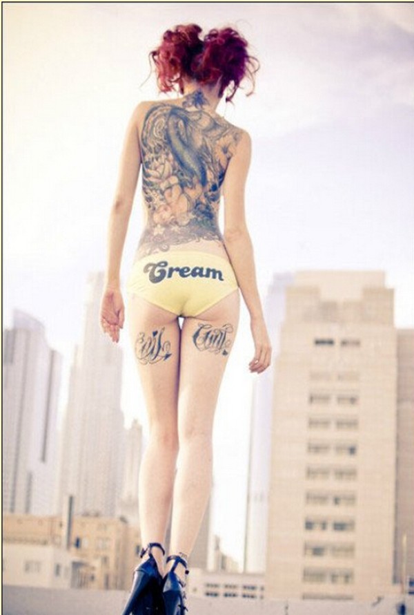 性感女生满背创意文身作品