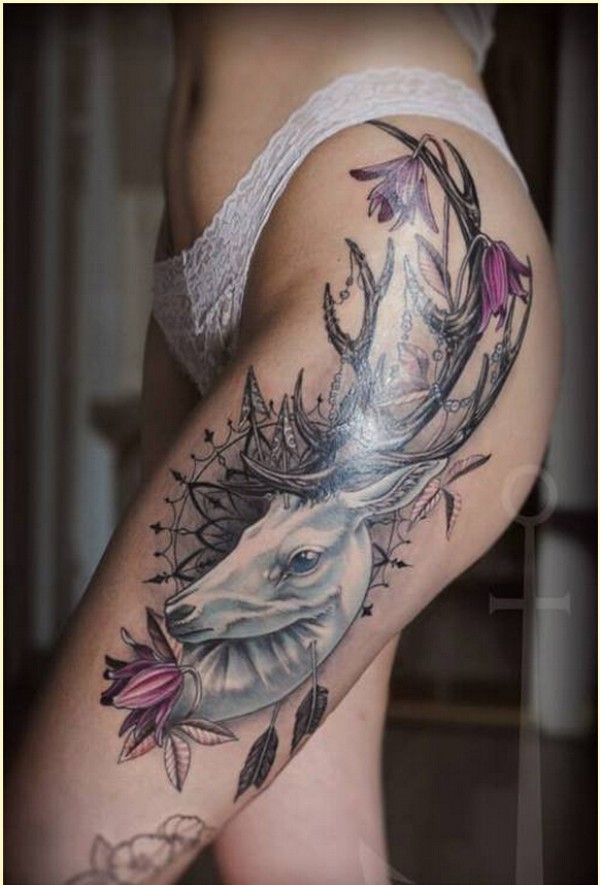 时尚女生腿部个性好看的羚羊纹身图案